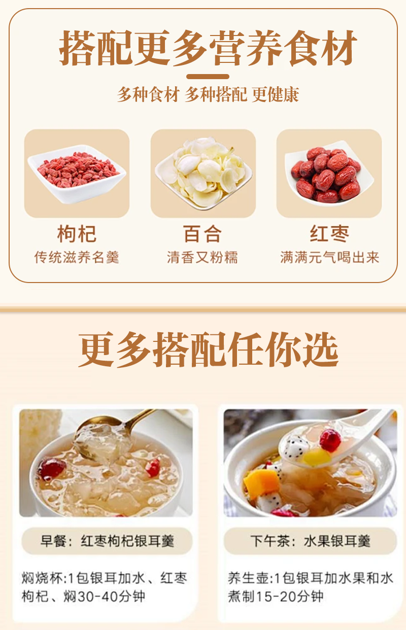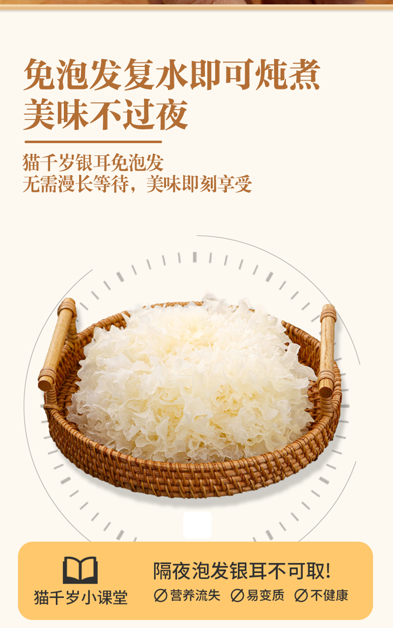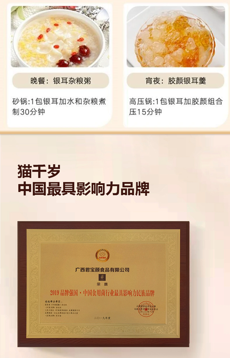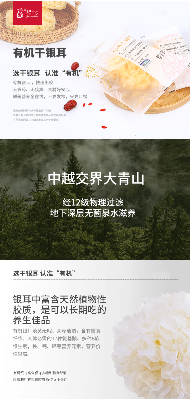 猜你喜欢 福建 竹荪|新鲜采摘 朵朵甄选 浓郁菇香 食补好物 营养健康|原色无沙无熏硫 2袋装 ¥35.9¥49.9 购买 长白山有机黑木耳|深山生长 肥厚鲜美 色泽鲜亮 朵型完整 高泡发率|三袋装 ¥39.9¥59.9 购买 有机甄选干银耳卜鲜味营养 快速出胶 软糯温润 嫩滑软绵 朵型完整|有机认证 0防腐 不熏硫 30克/袋 6送1袋 ¥42.9¥59.9 购买 正宗攸县 鲜香干|匠心工艺 手工纯制 豆香浓郁 劲道爽口传承美食|5袋装x238克 保鲜箱配送 ¥27.9¥39.9 购买 高安腐竹干货-非转基因 口感纯正 久煮不烂 批文专利 地理标识-每袋净含300克 买一送一 到手两袋装 ¥28.80¥47.80 购买 七彩菌汤包-十种山珍食材配比 无硫熏 无色素 无添加-两袋装/160克 ¥33.90¥49.90 购买 纸皮原味生核桃-原色果香 果仁饱满 手捏即开-大果仁420克 两袋装 ¥19.90¥39.90 购买 【特级】新疆吊干灰枣可免洗-15袋独立小包 整箱3斤装 ¥48.90¥80.90 购买