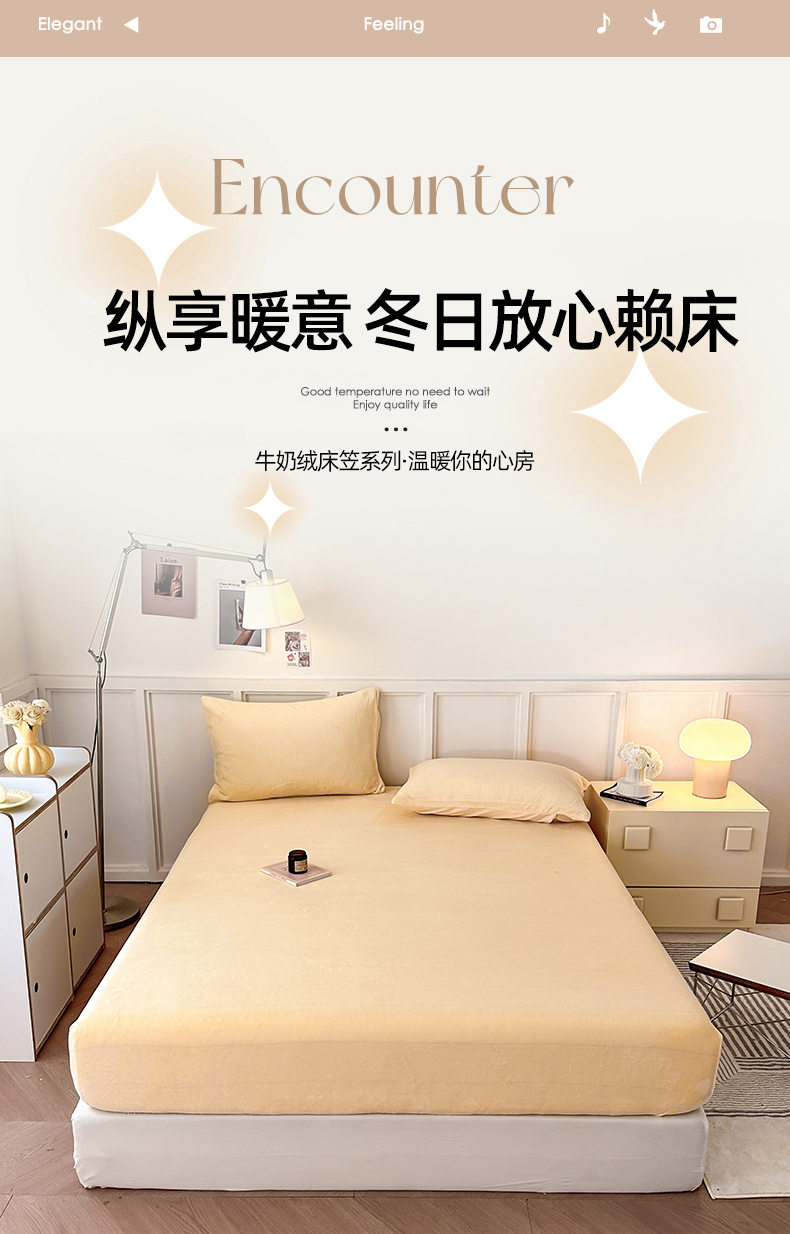 冬季 牛奶绒床笠柔软舒适恒温保暖持久锁温水洗方新品便不易掉毛|床笠+枕套款可选