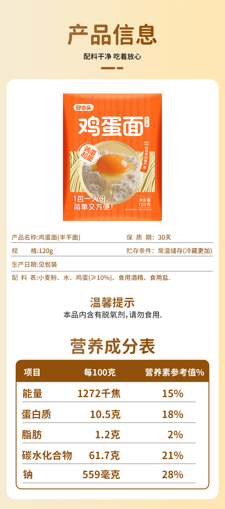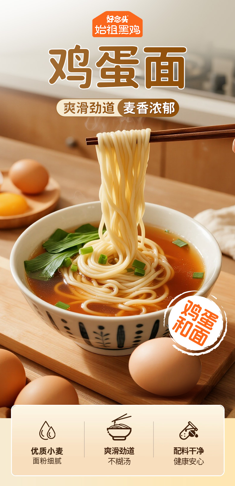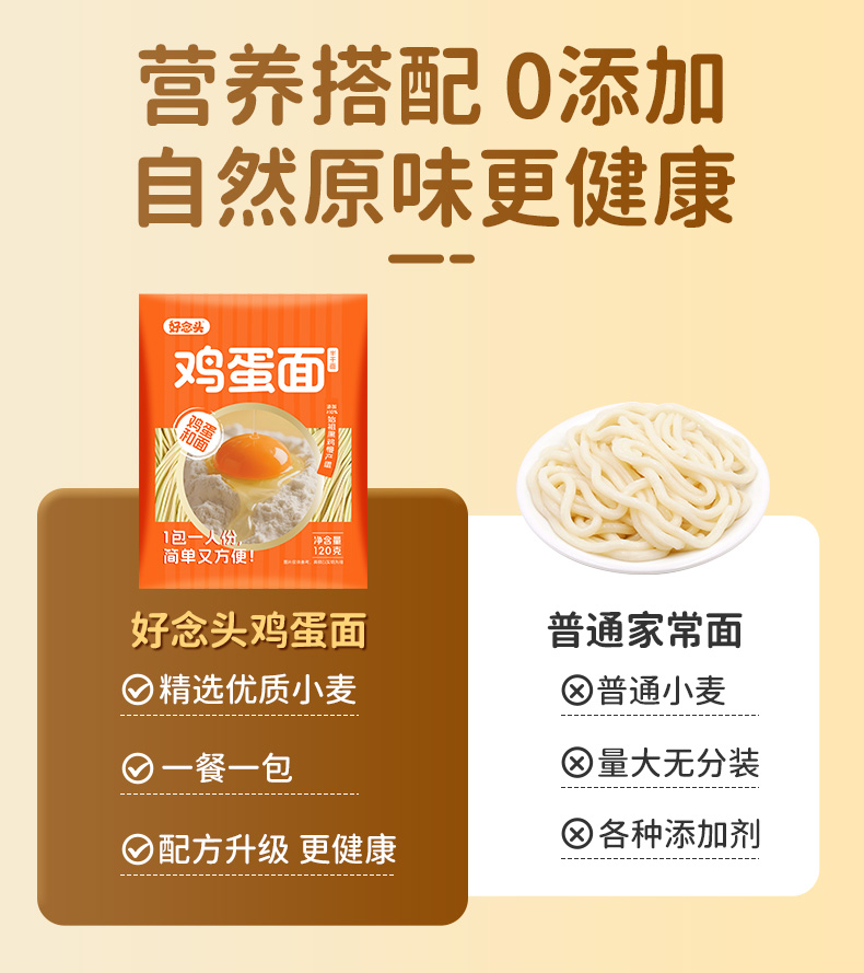 好念头鸡蛋半干面爽滑劲道干净配料优质小麦真材新品实料食品安全检测6袋装