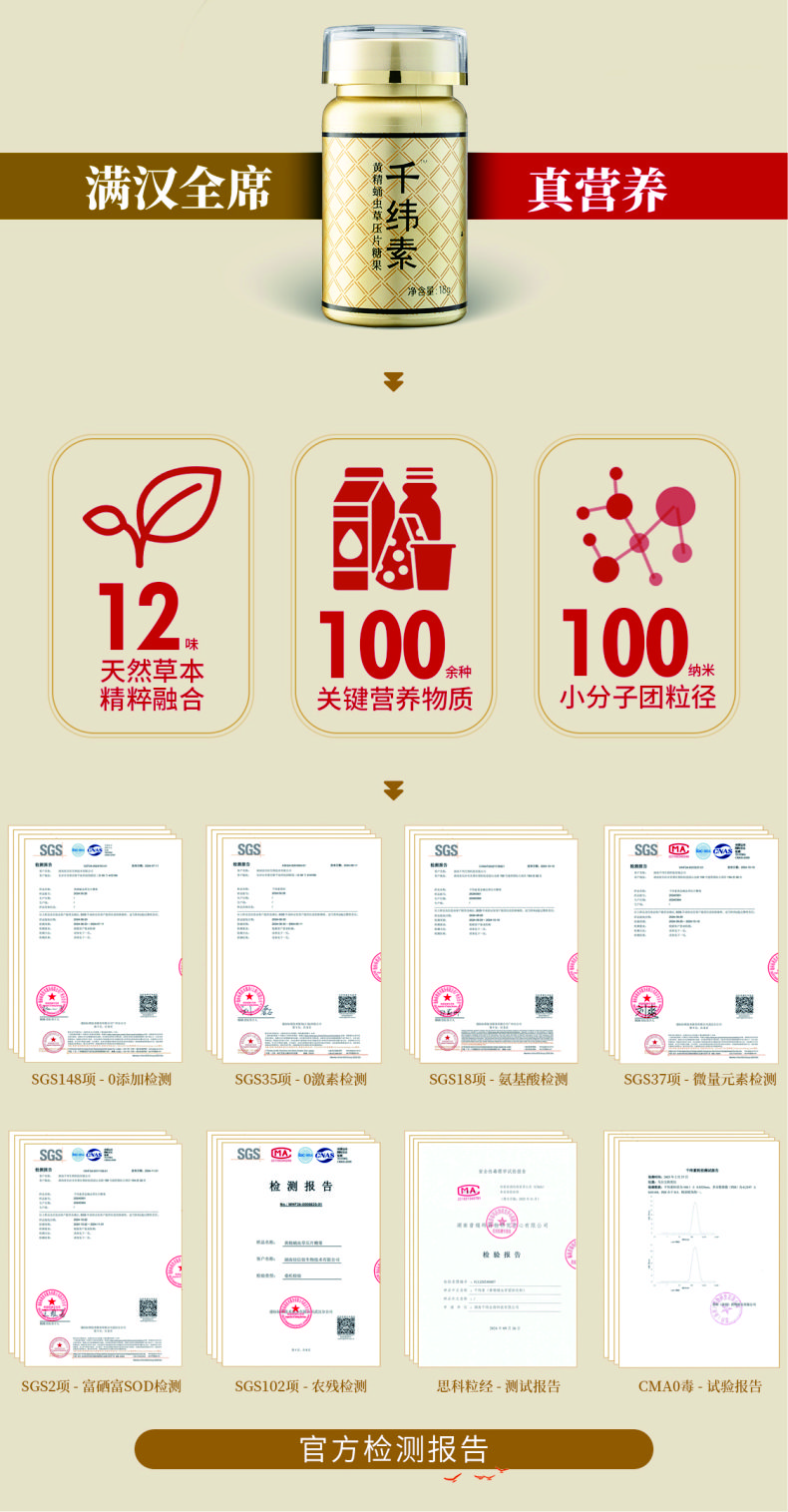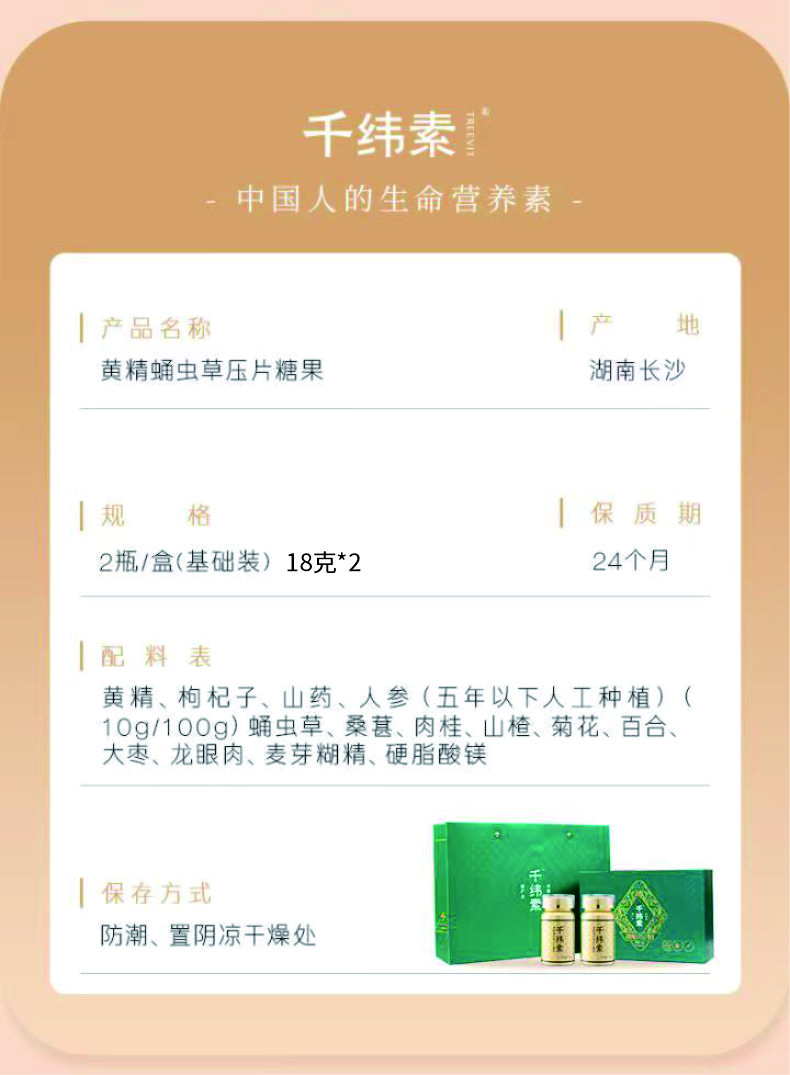 猜你喜欢 耘田生活枣仁派|甜润红枣酥脆核桃黄金配比真材实料独立包装真空锁鲜|200克/袋 ¥18.8¥28.8 购买 五谷磨房核桃芝麻黑豆粉|古方今研药食同源原生营养|600克/罐两罐装 ¥53.9¥69.9 购买 新品千纬素黄精蛹虫草片|天然草本根源内养有序代谢均衡营养 科学配比|通+调+补+养 4重发力18克/瓶/36片 ¥259¥369 购买 黑芝麻丸食补养黑真材实料软糯拉丝自然香醇营养新品高钙健康膳食|净含量408克/袋两袋装 ¥33.9¥49.9 购买 长白山头道破壁松花粉|全新换代 营养加倍 超值升级 天然野生|买2罐送2罐 额外赠4根蜂蜜条 手提礼盒装 ¥98¥198 购买 头道破壁灵芝孢子粉|灵芝精华 蓝帽认证 细腻速溶 挂壁孢油 更易吸收 强身健体|全新升级 高效典藏款 ¥169¥269 购买 金标磷虾油|营养6合1双专利认证 直达细胞 浸透血管加强代谢|八大零添加 60粒x3瓶装 ¥218¥298 购买 有机三七粉|高强破壁 粉质细腻 8%皂苷 药企出品 营养有效|有机认证 多项质检 42克/14袋/盒装 ¥168¥328 购买