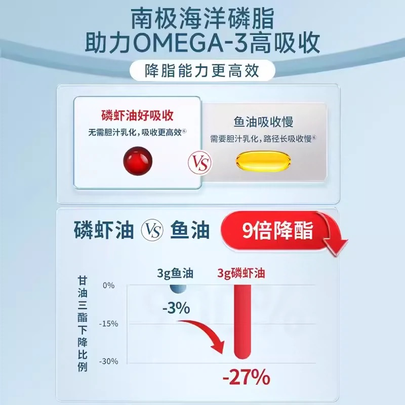 金标磷虾油丨营养6合1 双专利认证 直达细胞 浸透血管 加强代谢丨八大零添加 60粒×3瓶装