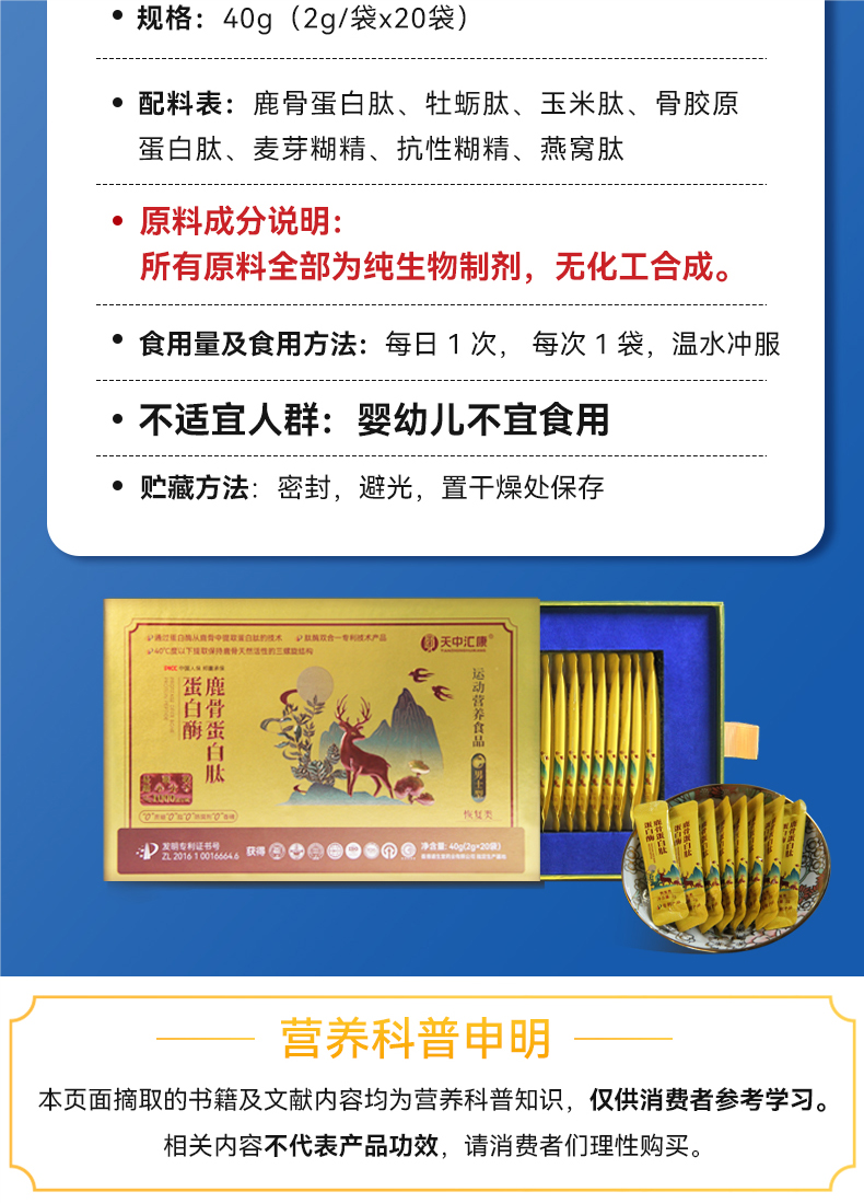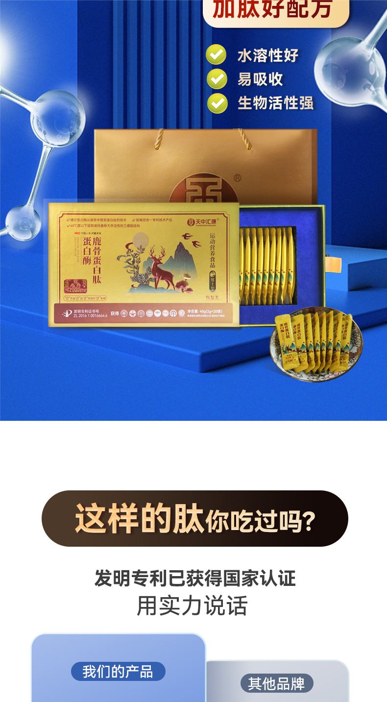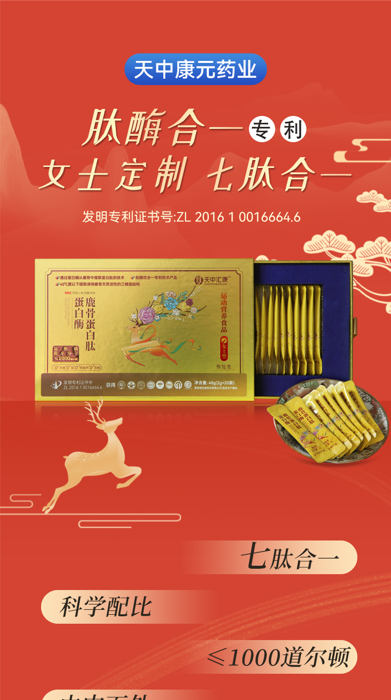 鹿骨蛋白肽|多肽萃取黄金配比分子吸收专利认证赋能升级|0添加男女款可选