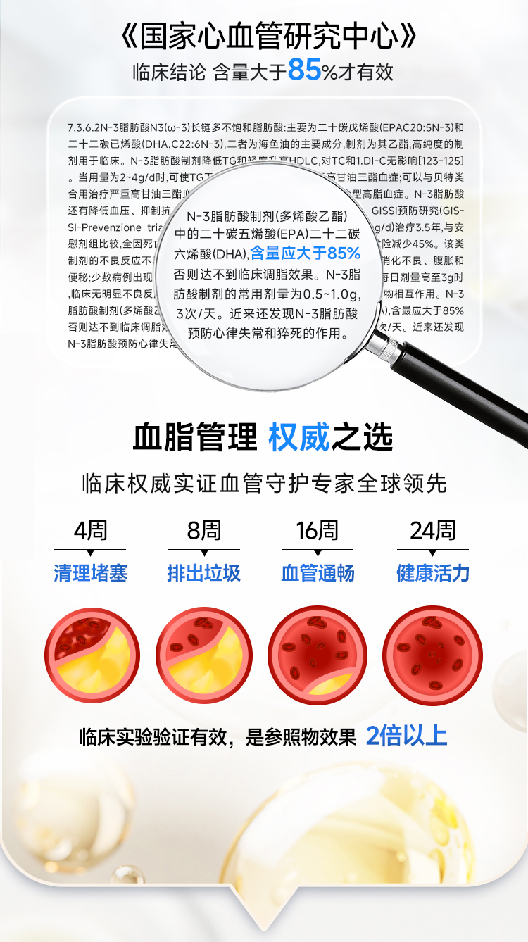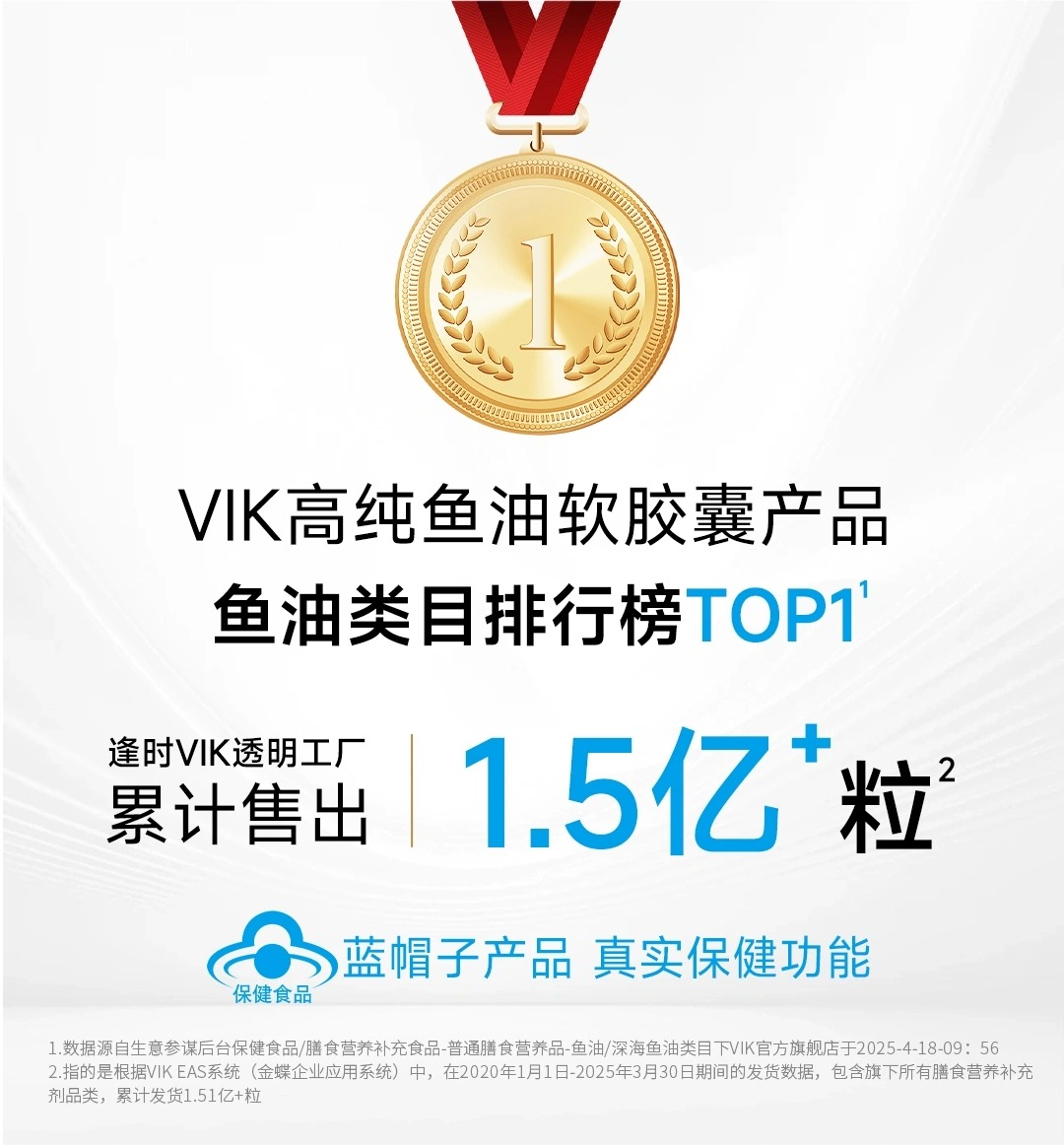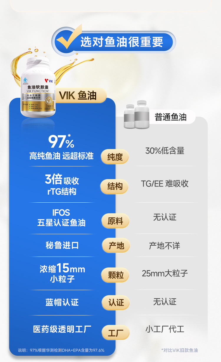 VIK高纯鱼油软胶囊|血脂健康大脑营养浓缩吸收蓝帽认证五星标准|120粒瓶装