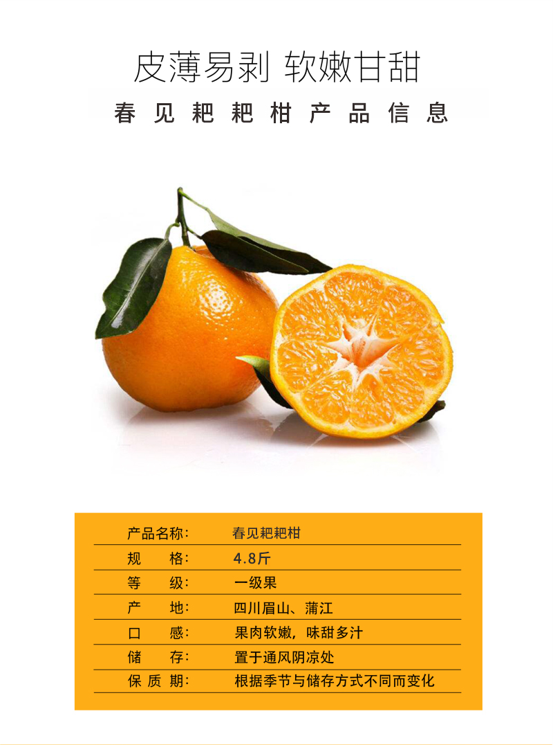 正宗春见粑粑柑|肉大饱满皮薄易剥软嫩甘甜果香浓新品郁新鲜采摘|自然催熟4.5-5斤/彩箱装