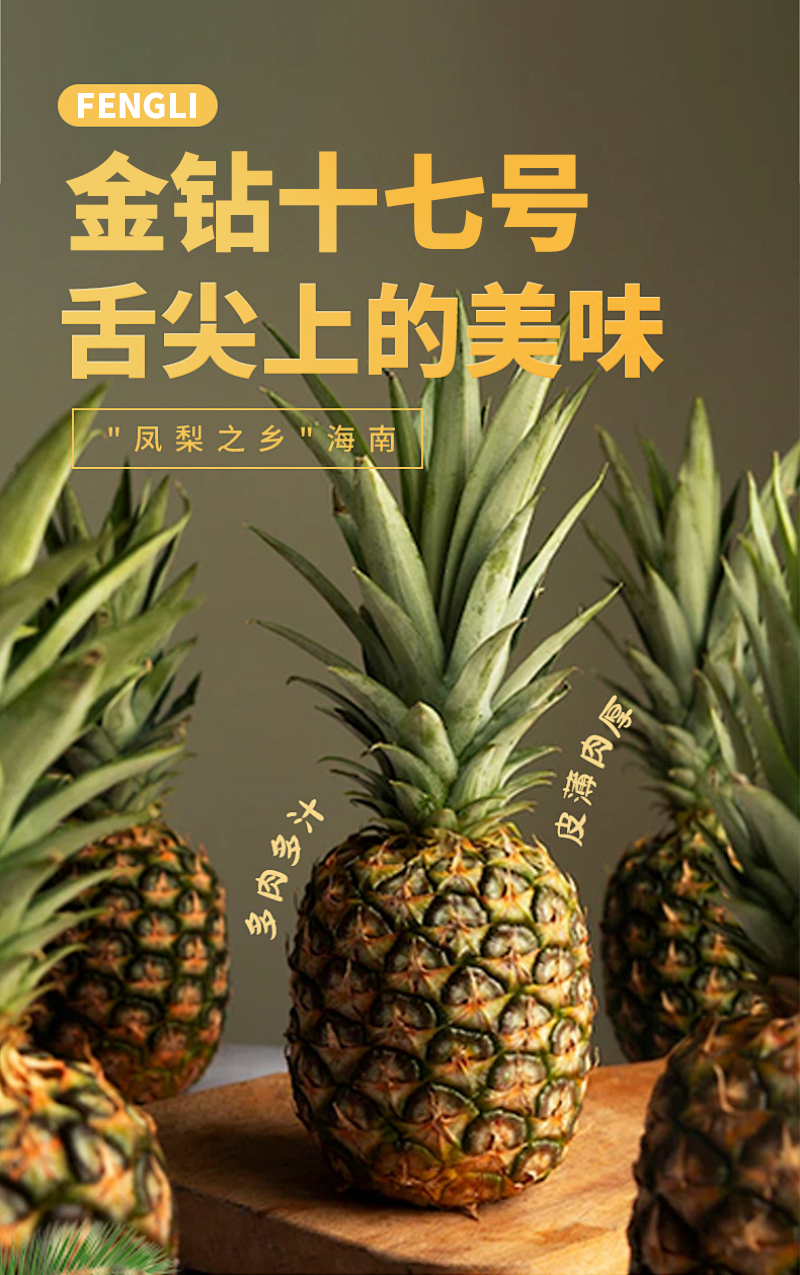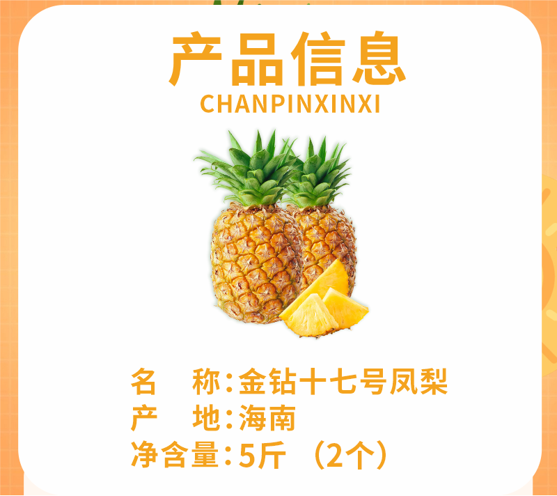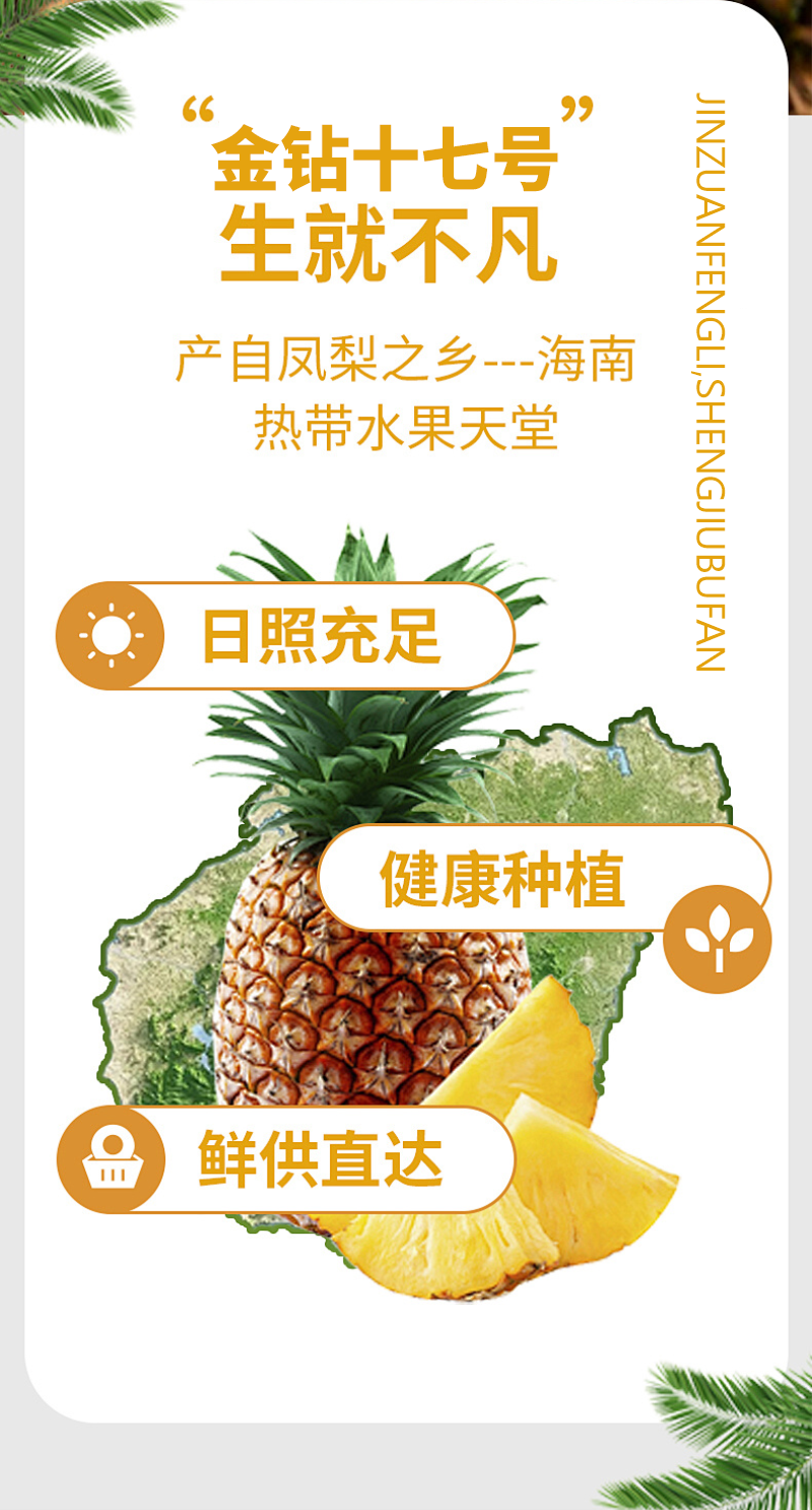 海南金钻17号凤梨|海南直发多肉多汁爆甜无酸营养新品丰富削皮即食|整箱4.5-5斤装2颗超大果