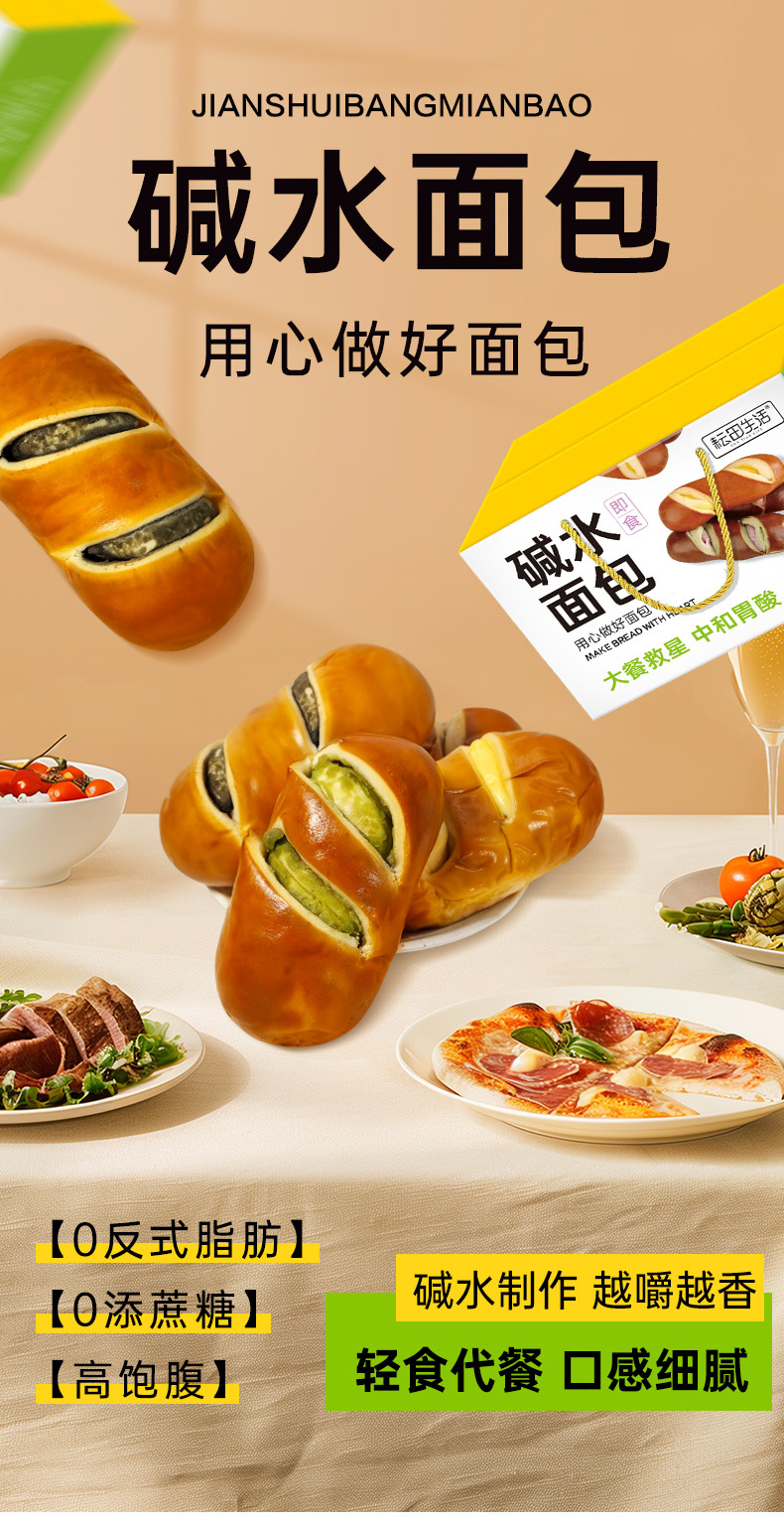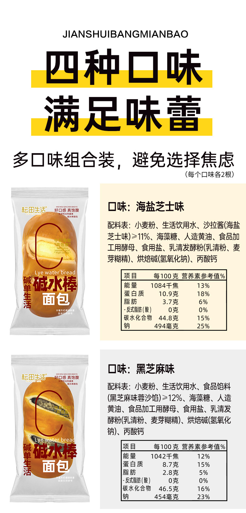 即食碱水面包丨大餐救星中和胃酸现做现发鲜香味美健康饱腹 轻食代餐丨四种口味一箱装