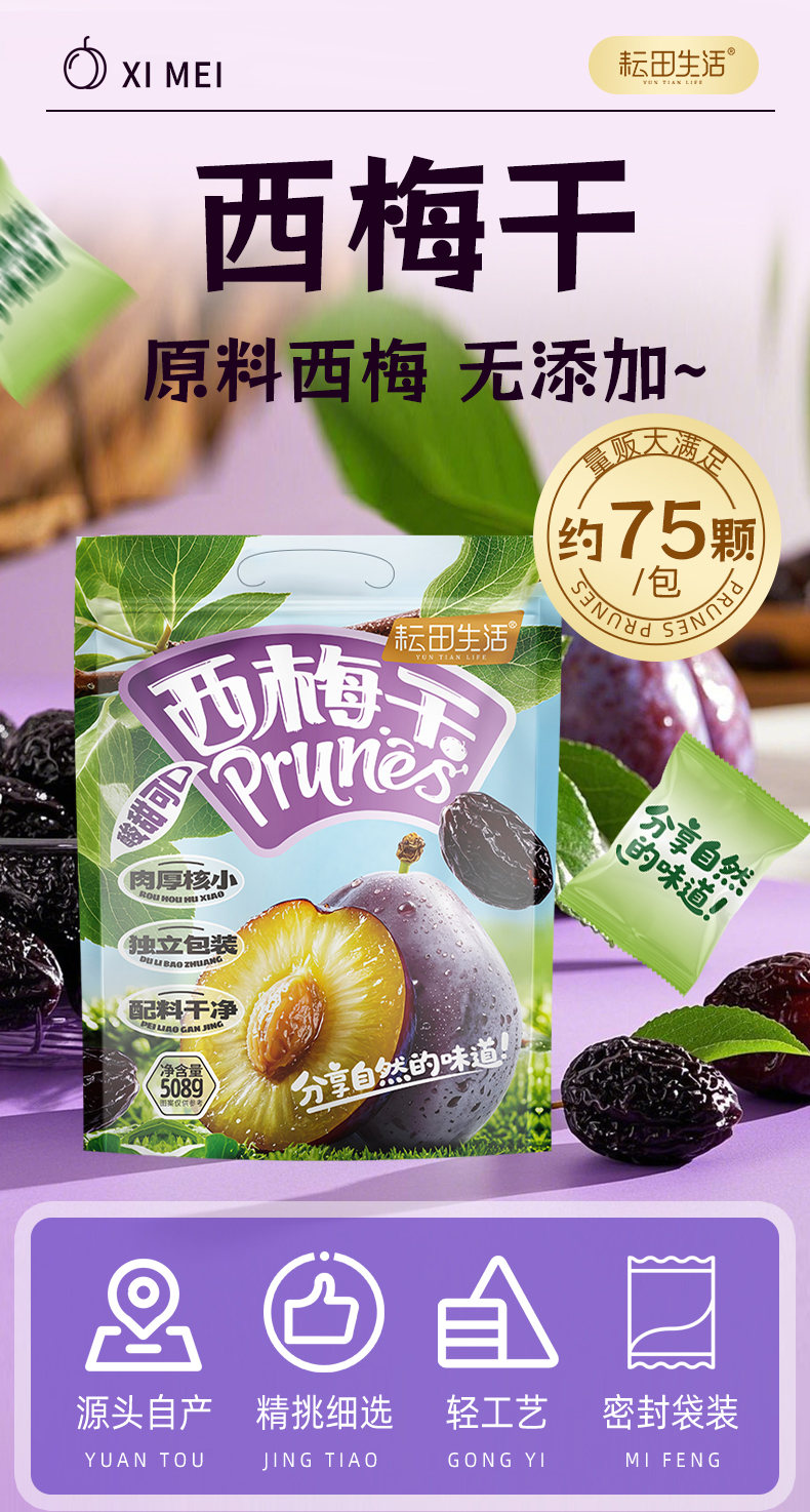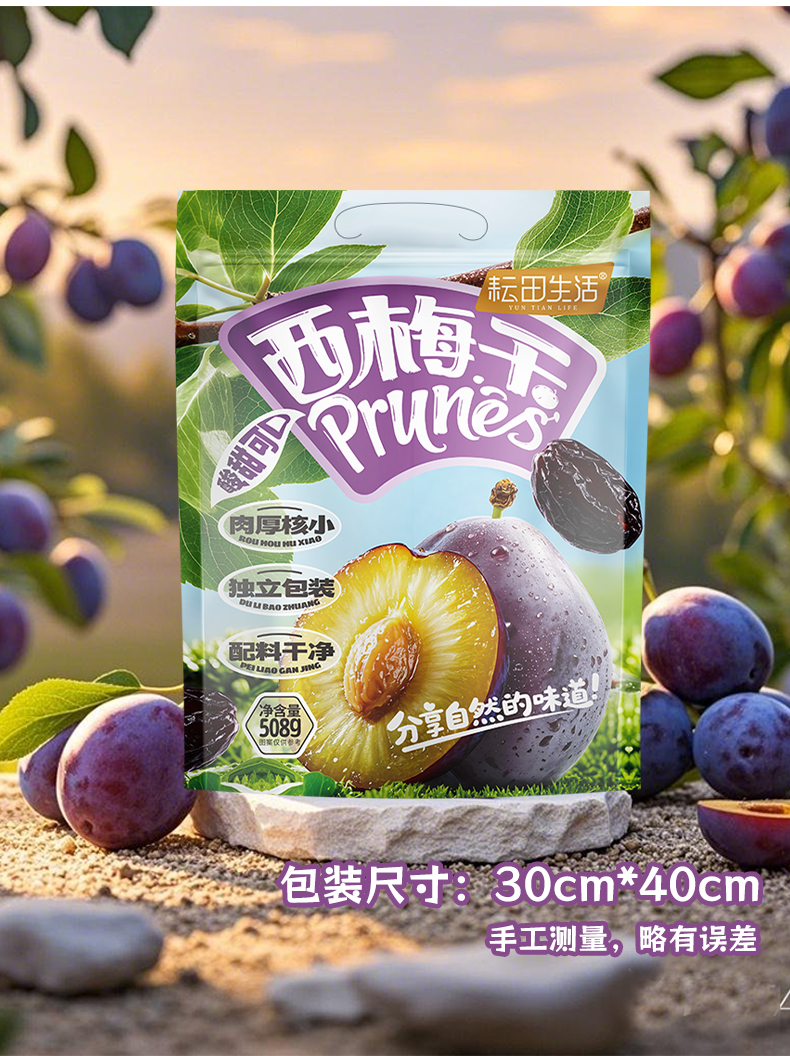 严选西梅干|优选原料肉厚核小酸甜可口膳食纤维配料干净独立包装|净含量508克/包