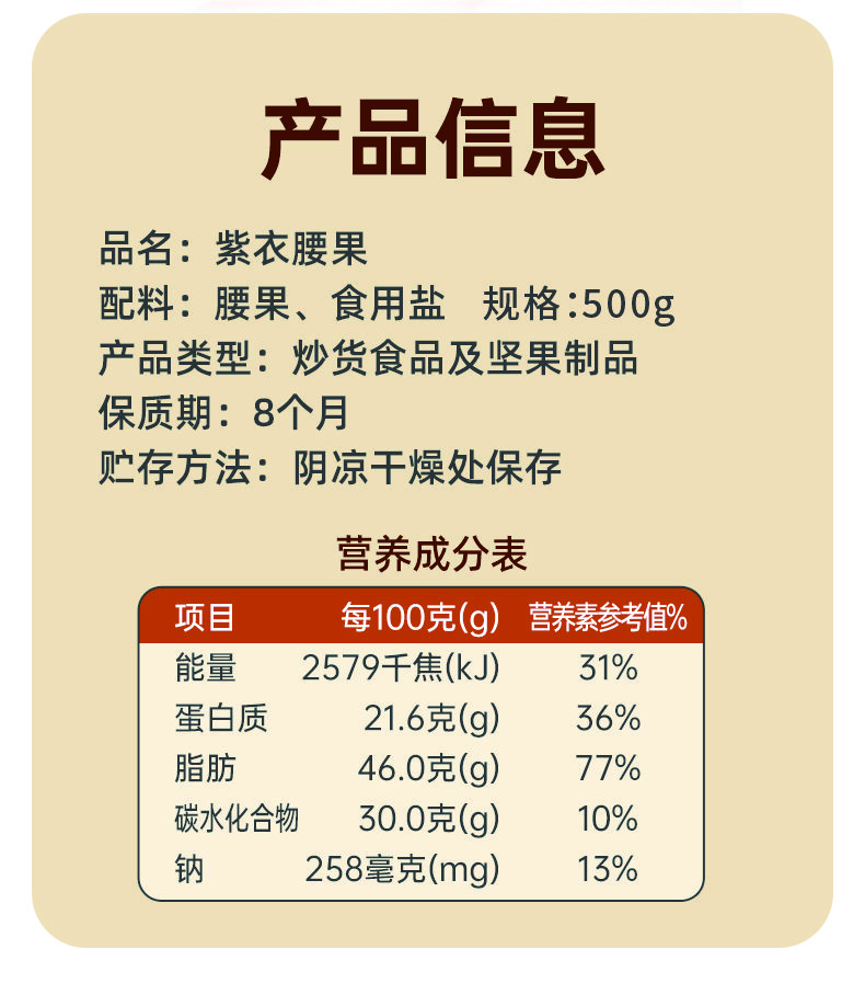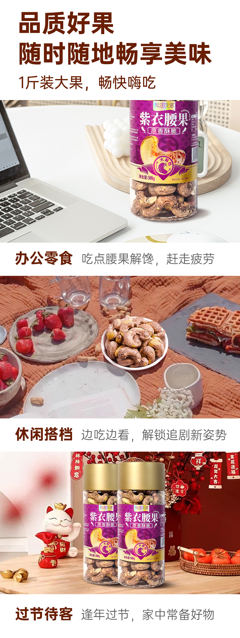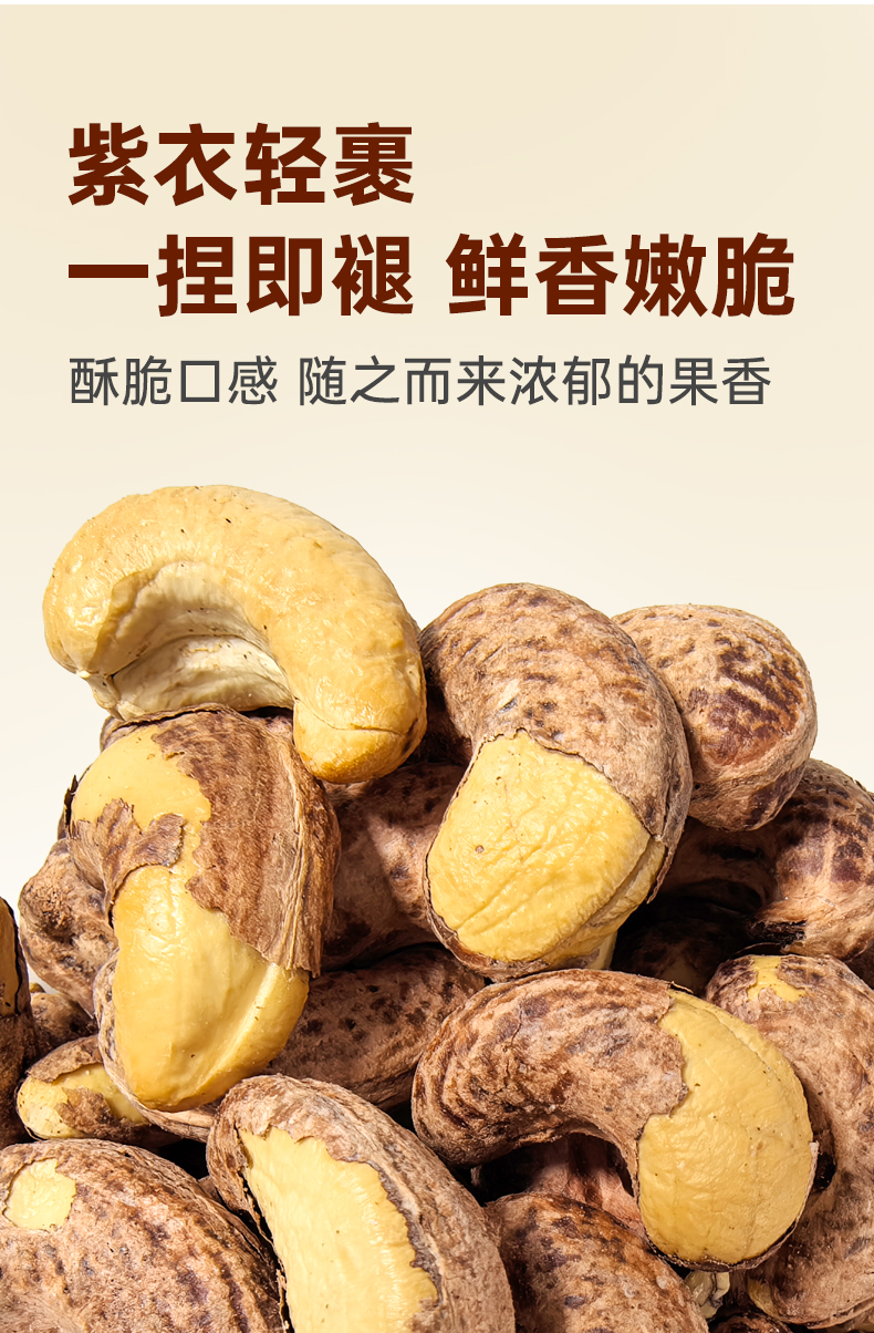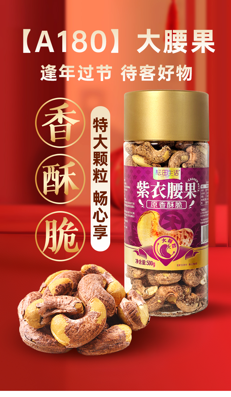 特大级紫皮腰果|营养丰富酥脆清香颗颗饱满配料干净送礼待客|净含量500克/罐