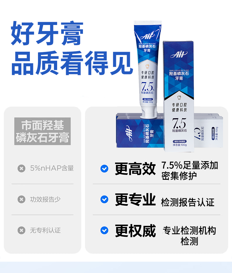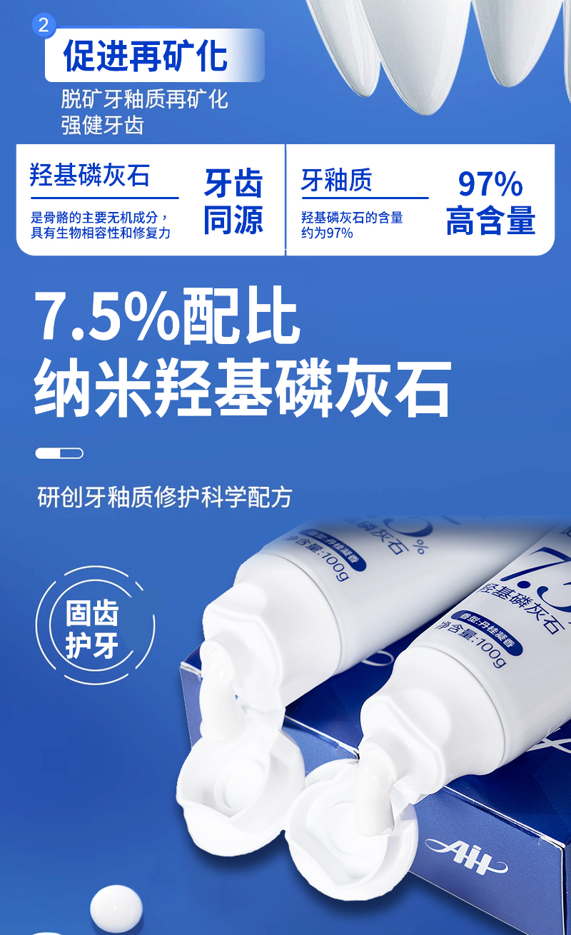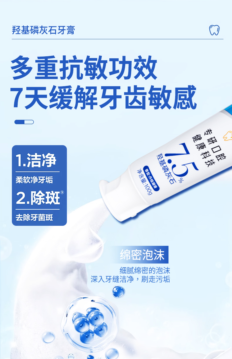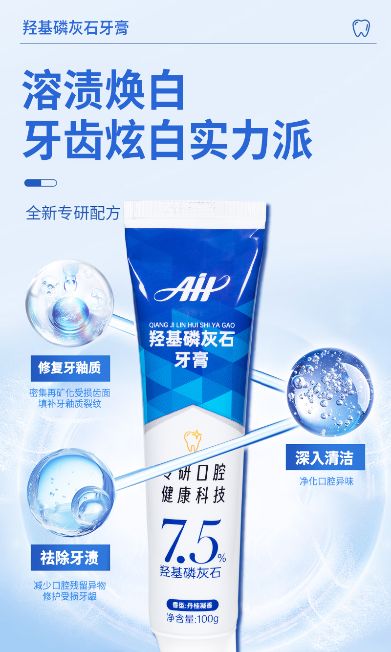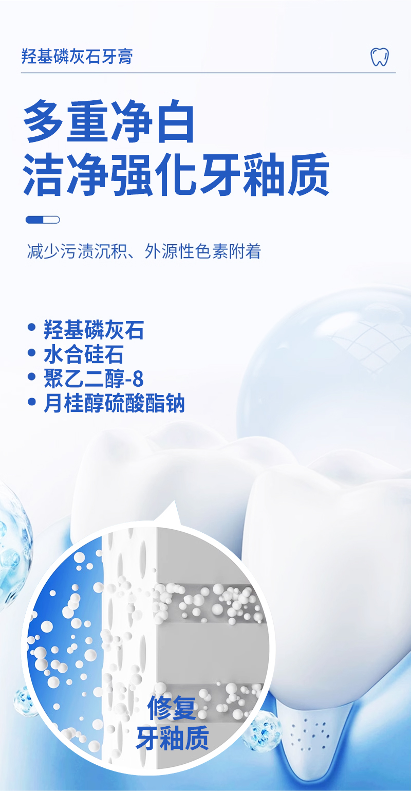 羟基磷灰石 牙膏|专研口腔 多效修护 减渍锁白 防龋护釉|7.5%科学配比