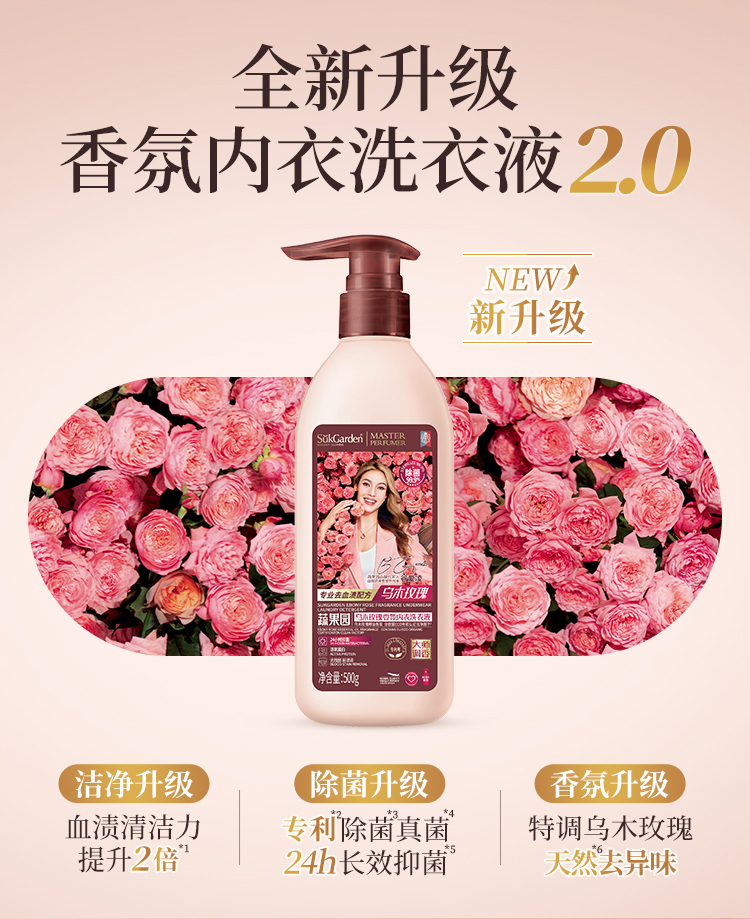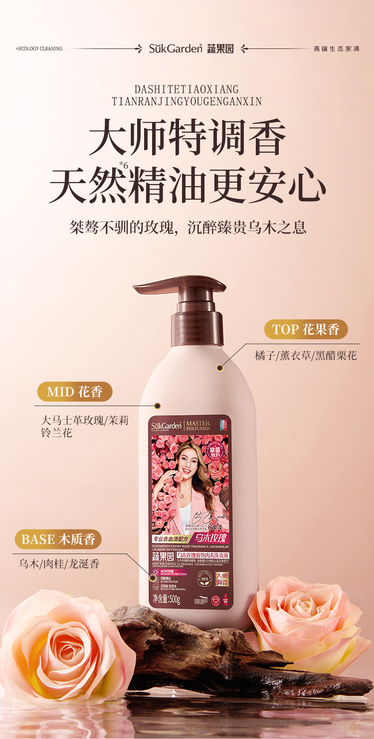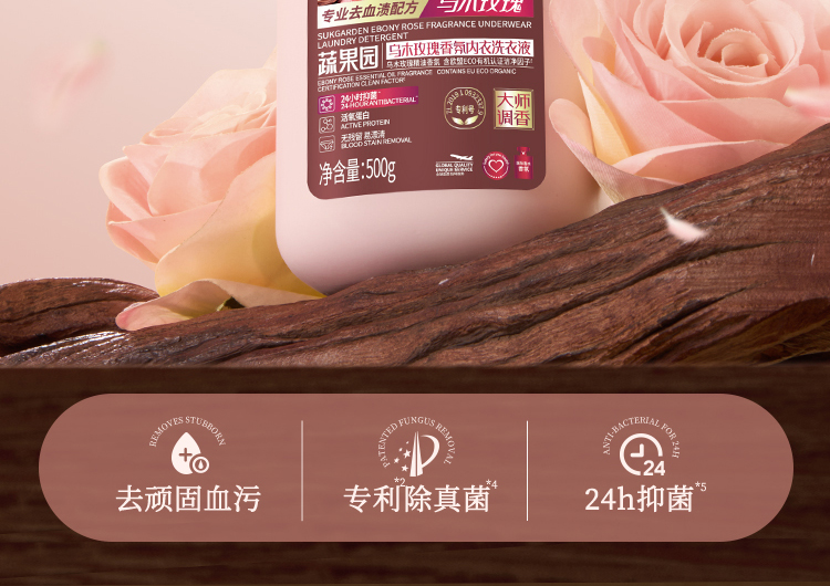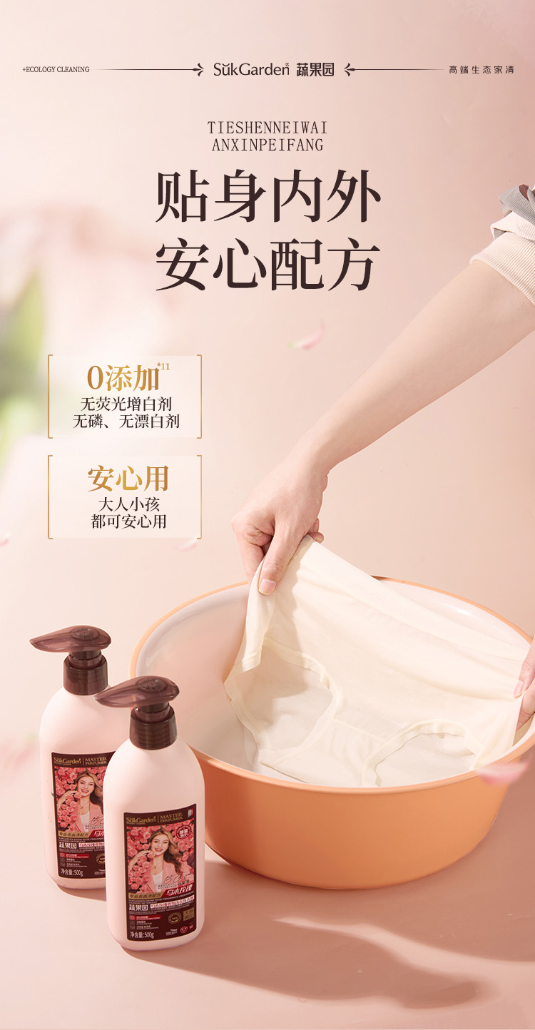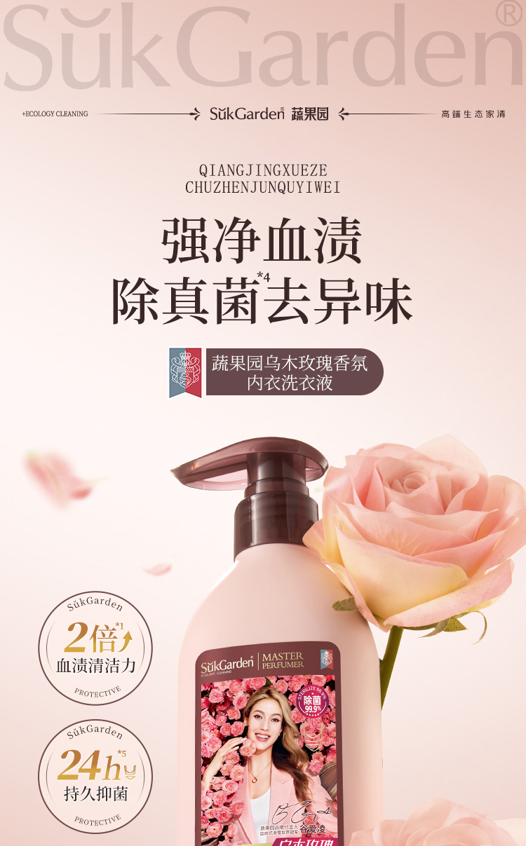 蔬果园内衣洗衣液|明星代言专业去渍长效抑菌乌木玫瑰香氛升级洁净升级|大人小孩安心用买2瓶送3瓶
