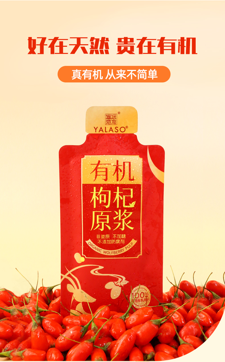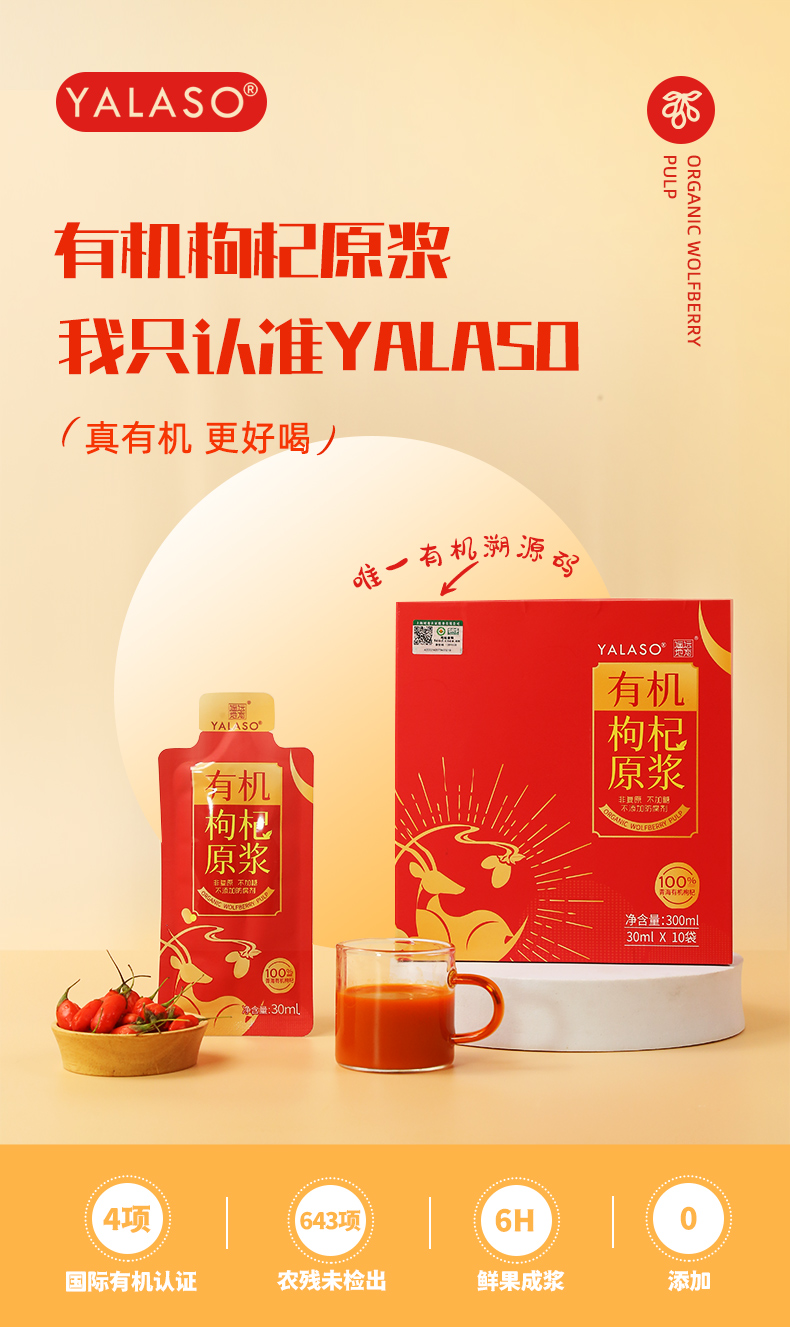呀啦嗦有机枸杞原浆|鲜果纯浆天然纯味 无菌灌装 健新品康营养|643项农残检测300ml十袋装
